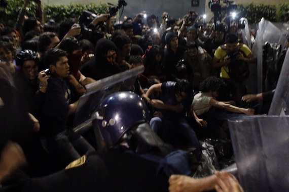 Se reporta que los policías de la Ciudad de México encapsularon y contuvieron incluso con golpes a quienes protestaban en el Senado como en Televisa Chapultepec.
