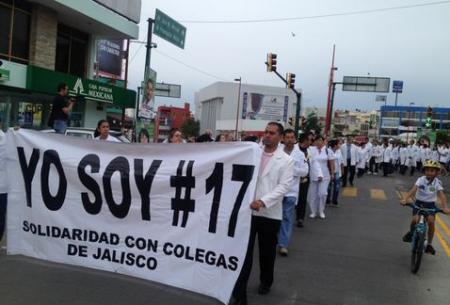 manifestarse en solidaridad con 16 colegas suyos del IMSS, adscritos al