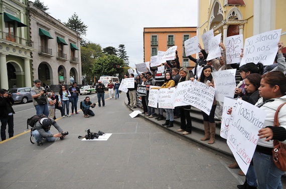 Además, colocaron un “tendedero” de consignas en el palacio de gobierno, donde despacha Javier Duarte, en señal de protesta por el silencio de las autoridades estatales.