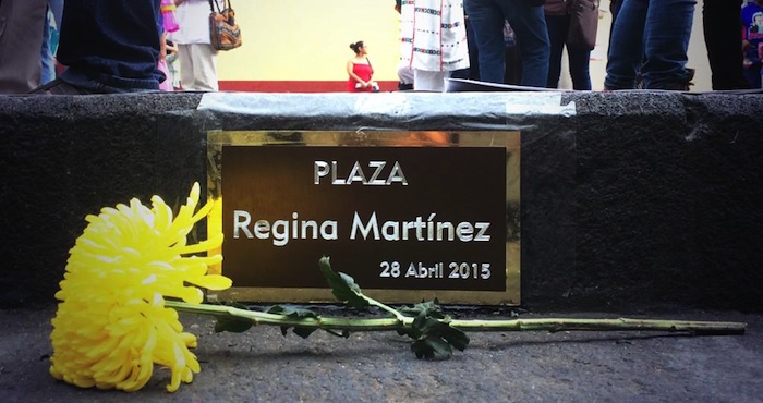 Apenas el pasado 28 de abril, periodistas, activistas, catedráticos, estudiantes y familiares rindieron un homenaje a la periodista Regina Martínez a tres años de su asesinato en Xalapa y colocaron una placa con la leyenda “Plaza Regina Martínez”.